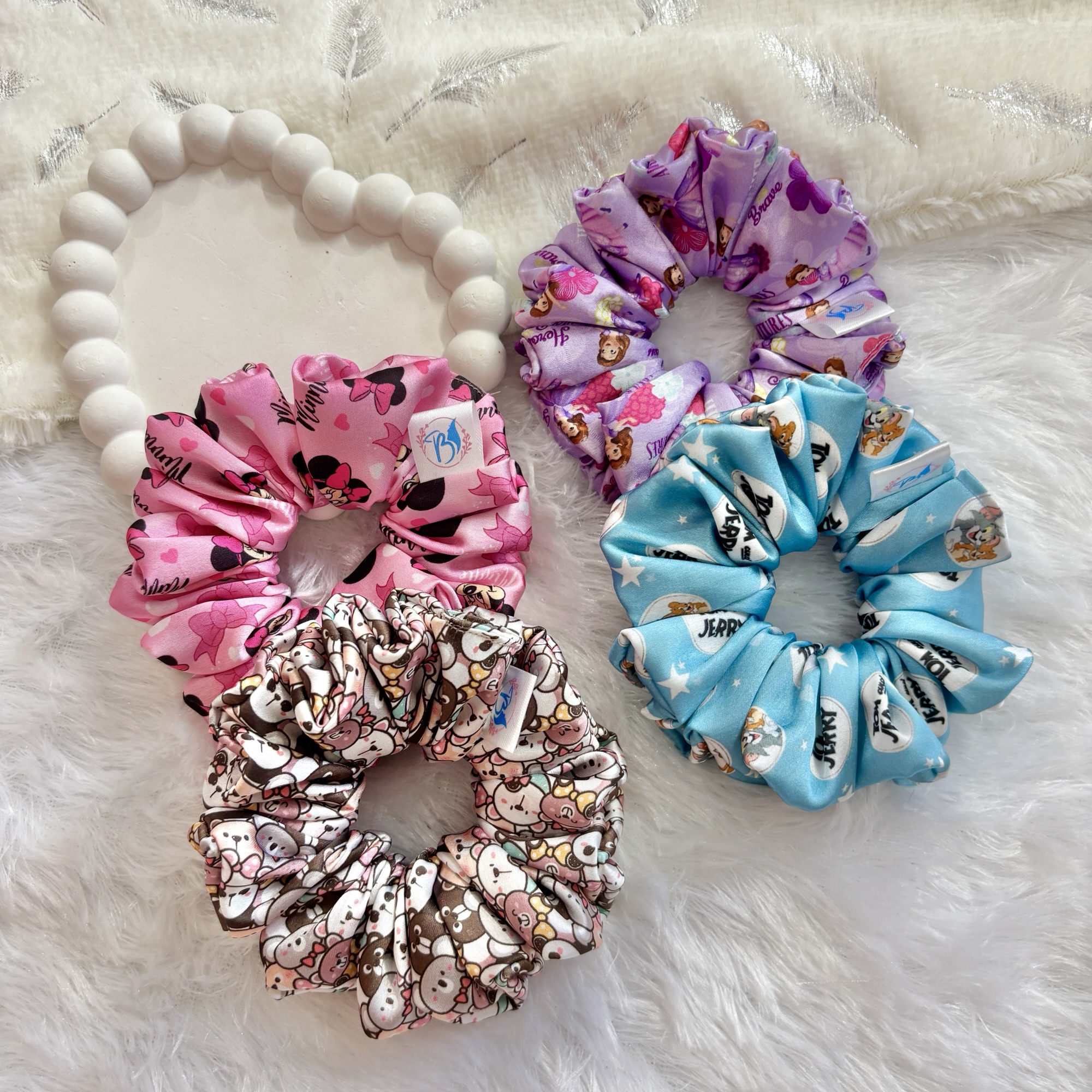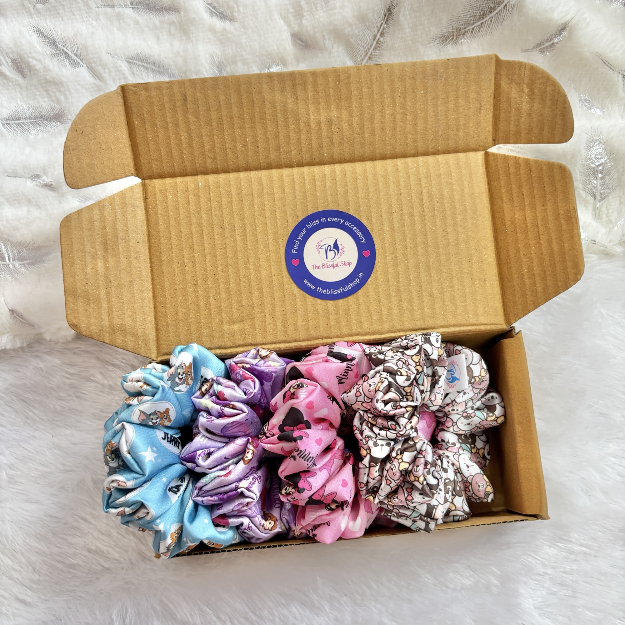 - Set of 4 premium satin scrunchies