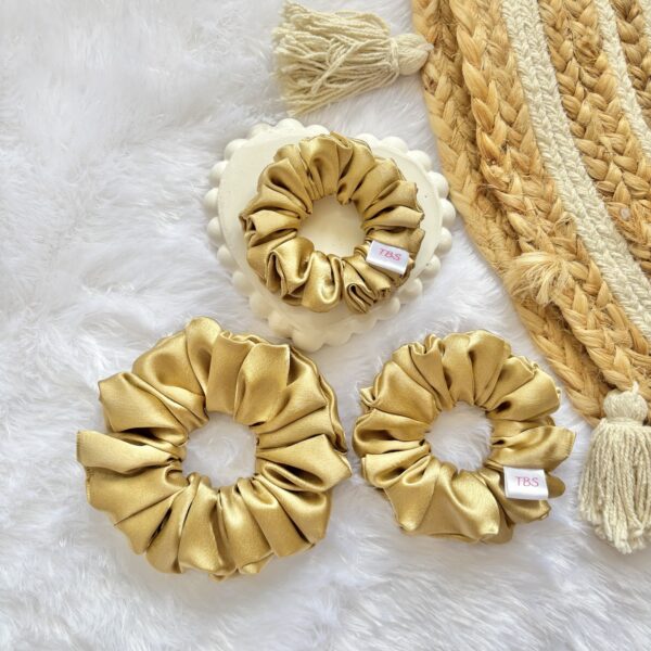 •Plain satin scrunchies in Small, Medium & Large sizes