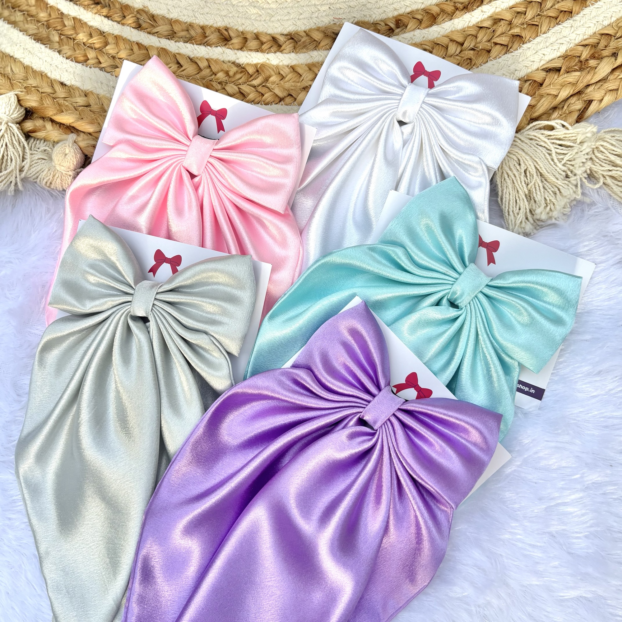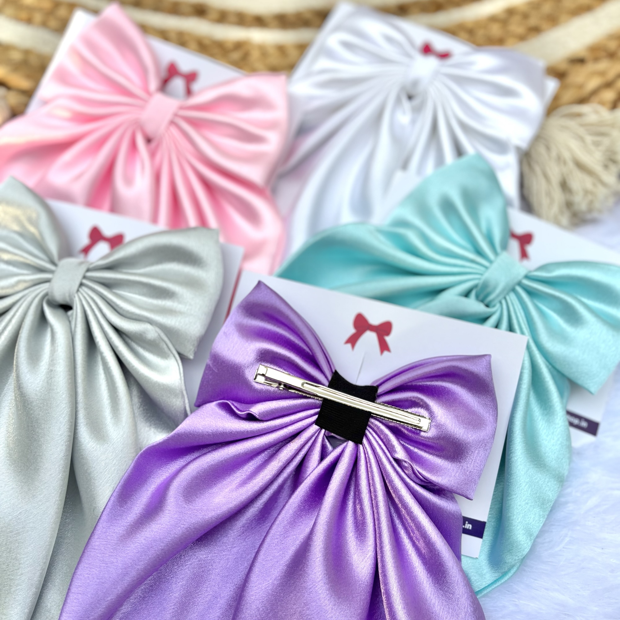 Long Tail Bow | Colors: White, Pink, Sky, Silver, Purple| Height : 11-12 inches | Alligator Clip | Pack of 1