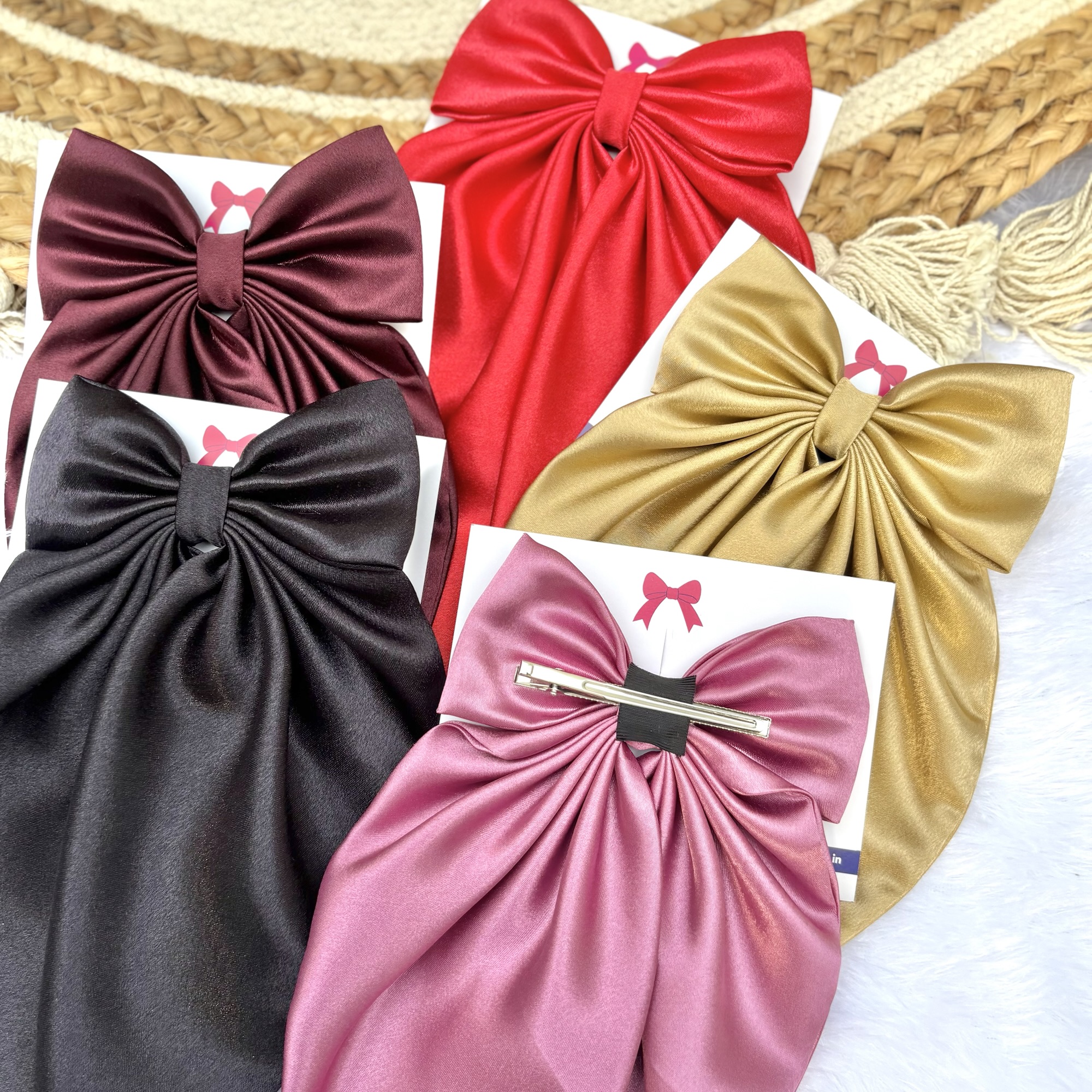 Long Tail Bow | Colors: Black, Gold, Red, Mauve Pink, Chocolate Brown| Height : 11-12 inches | Alligator Clip | Pack of 1
