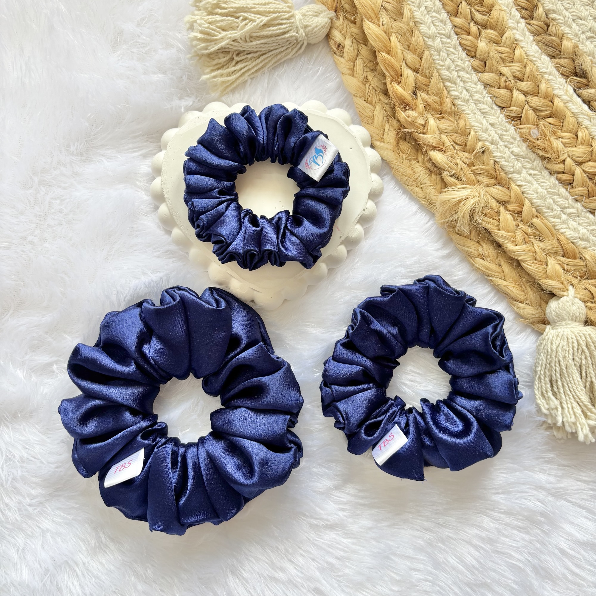 •Plain satin scrunchies in Small, Medium & Large sizes