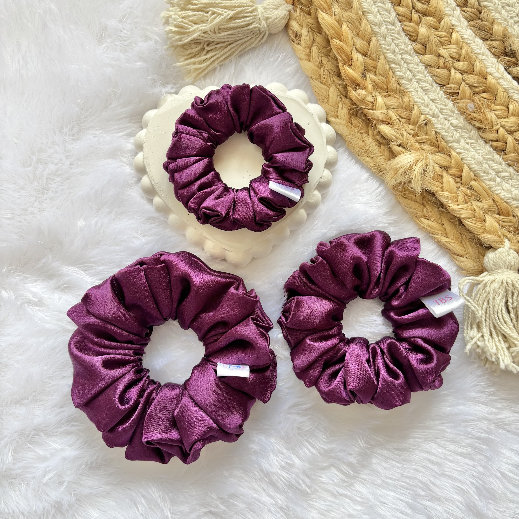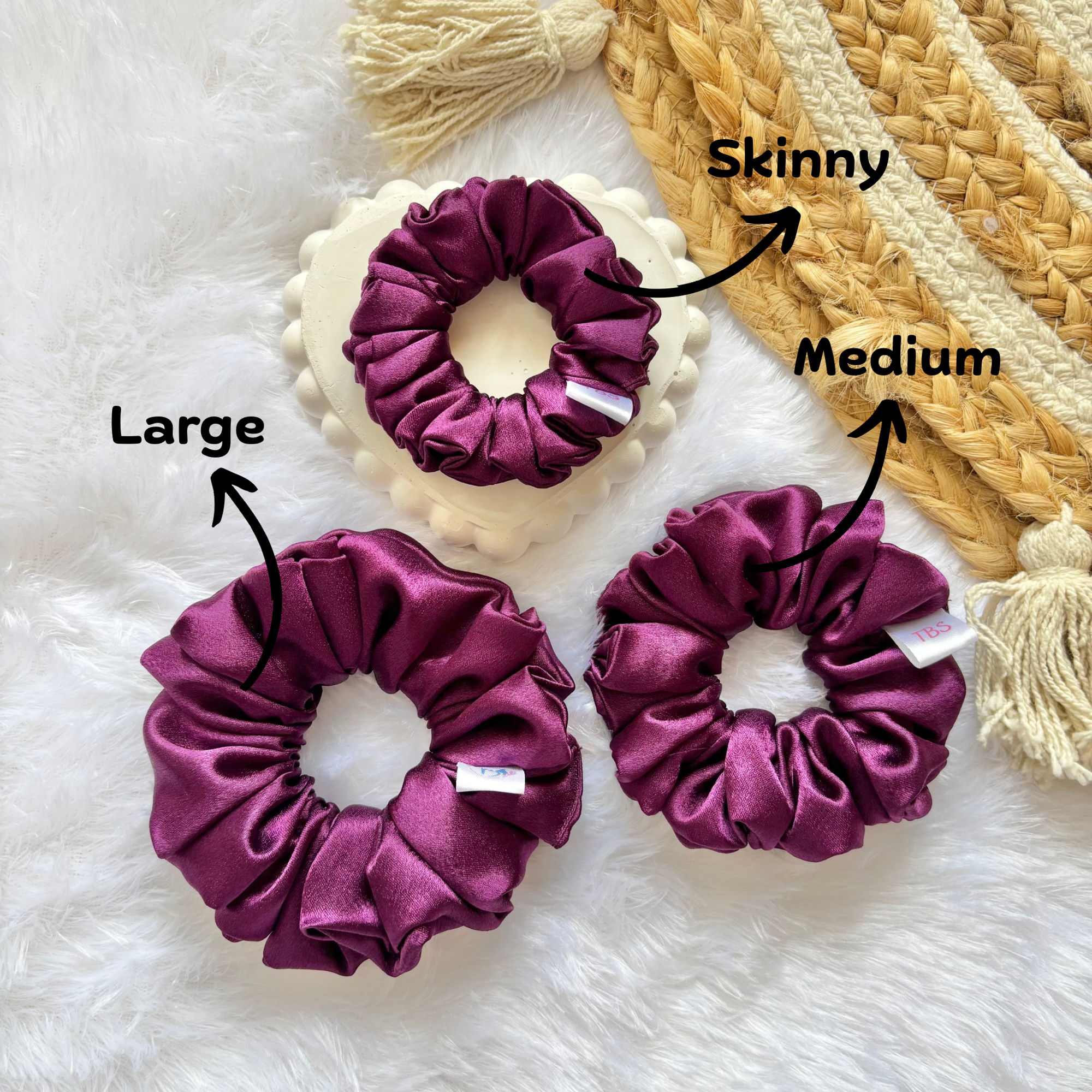 •Plain satin scrunchies in Small, Medium & Large sizes