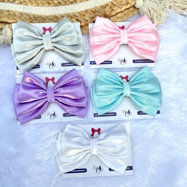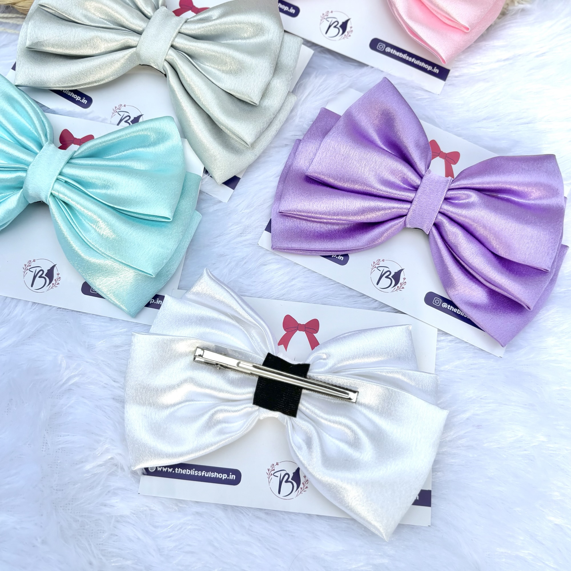 Triple Layer Bow | Colors: White, Silver, Pink, Purple, Sky | Length: 6 inches | Alligator Clip | Pack of 1