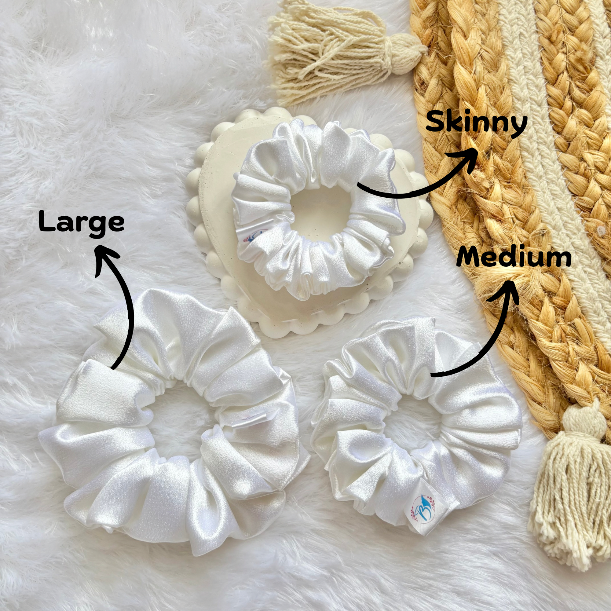 •Plain satin scrunchies in Small, Medium & Large sizes