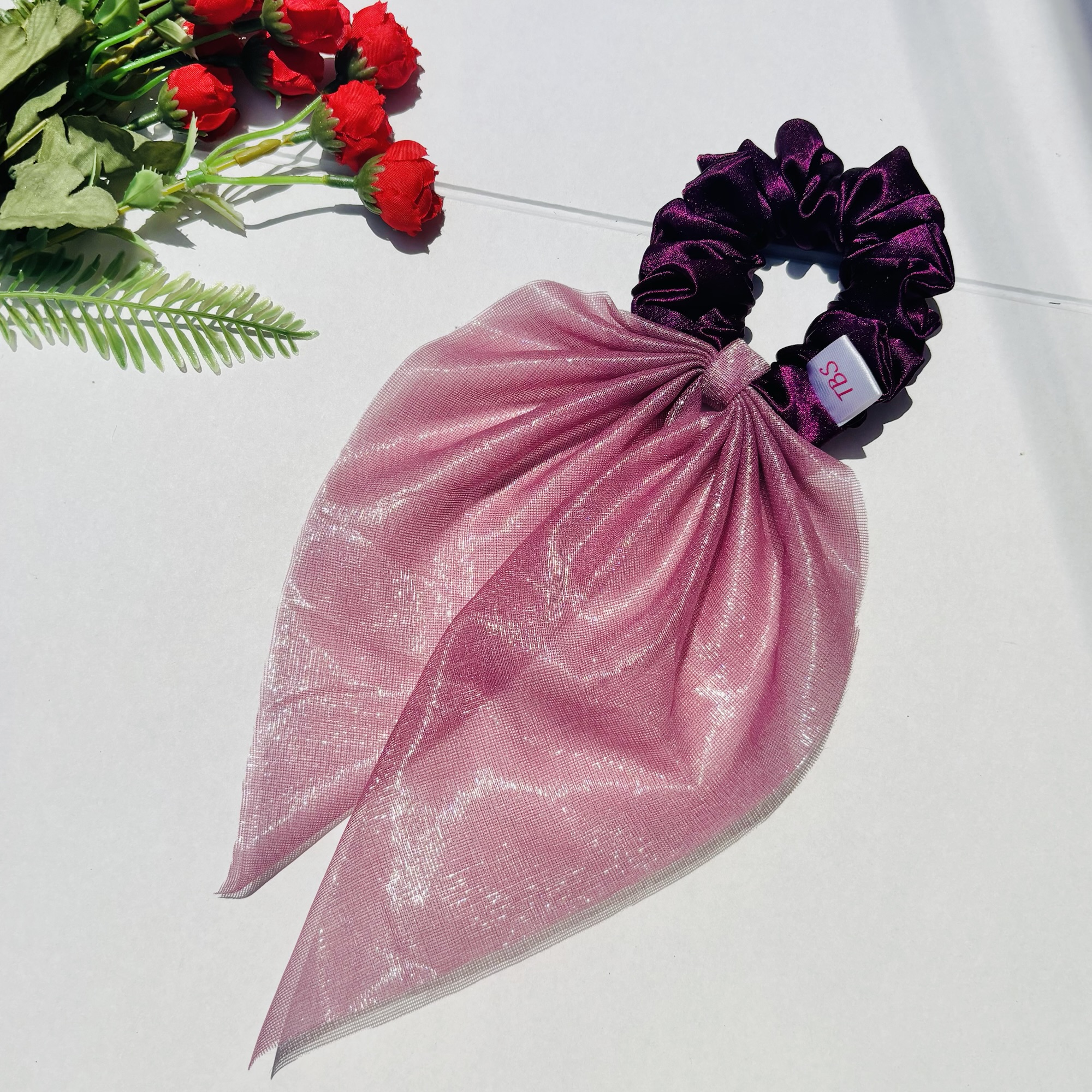 Skinny Satin Scrunchie with shimmery soft net tail attached with it. They add perfect magical touch to any hairstyle.